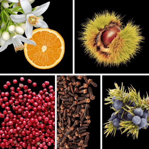 Herznote: eine warme Mischung aus Kastanie, Guajakholz und Wacholder